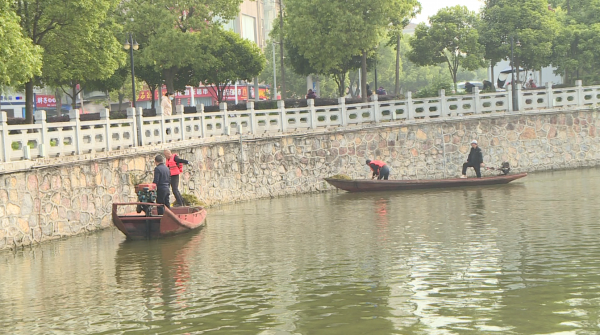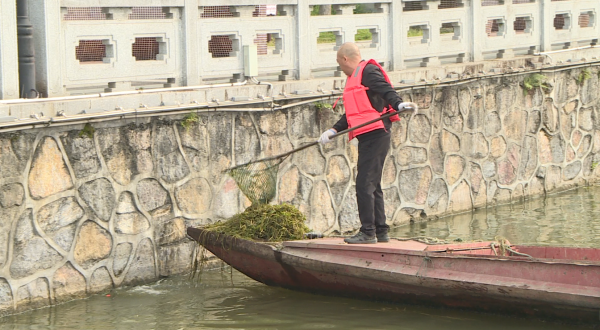 清理過程中,工作人員一人在船頭調(diào)整方向和速度,一人在船尾拿著自制的長(zhǎng)桿、撓鉤等工具,對(duì)水面上的紙盒、煙頭和礦泉水瓶等漂浮垃圾進(jìn)行打撈,并將清理的垃圾清運(yùn)至岸邊,再用垃圾車運(yùn)走進(jìn)行統(tǒng)一處理。