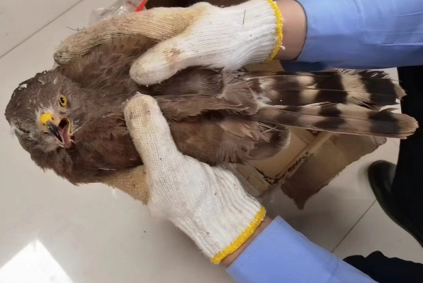 宜城市公安局王集派出所民警迅速趕到現(xiàn)場,暫時帶回派出所照料,查看鷹隼傷勢,并于5月9日將其轉(zhuǎn)至襄陽野生動物世界觀察治療。