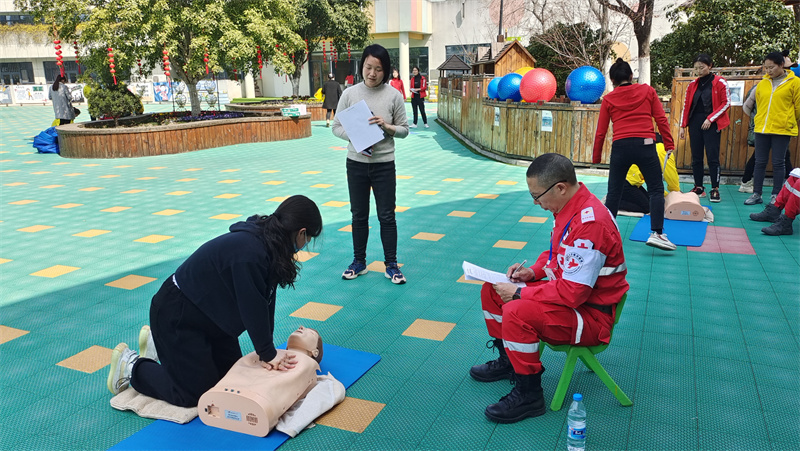 隨后,宜城市實驗幼兒園邀請襄陽市紅十字會講授急救知識和技能。培訓(xùn)中,講師們就紅十字會起源、心肺復(fù)蘇術(shù)、創(chuàng)傷救護等應(yīng)急救護知識技能進行系統(tǒng)講解和實操教學(xué)。教職工學(xué)會了基本的急救理論知識和實踐操作,順利通過了考核,獲得《紅十字救護員證》。