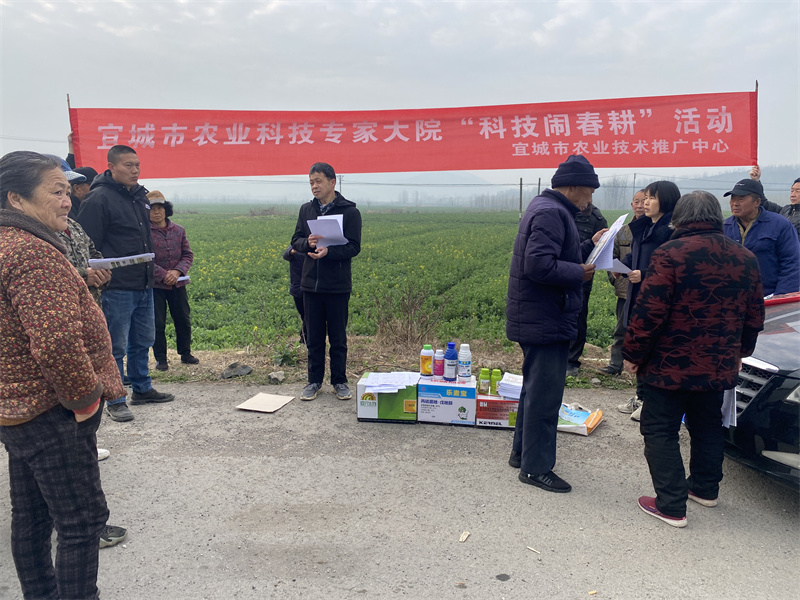 在田間地頭,市農(nóng)技推廣中心專家現(xiàn)場為村民解答種植難題,給村民增收吃上了“定心丸”。農(nóng)技人員還組織村民觀摩利用無人機(jī)防治油菜病蟲害。