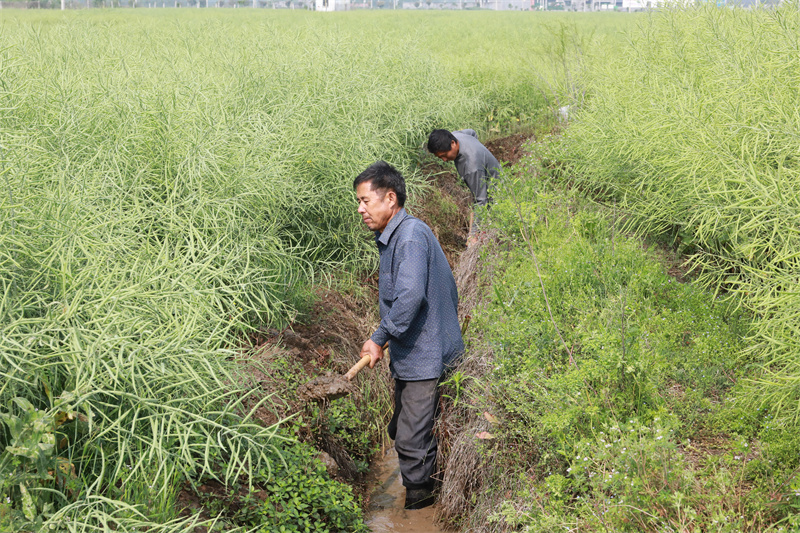 胡傳忠說:“我們這個油菜是新品種,根據(jù)目前長勢,再過上20天就可以收割了。當前,菜籽田需要干燥,天氣預(yù)報說從馬上又要開始下雨了,我就把這四周邊溝疏通一下,防治雨天積水,影響產(chǎn)量!