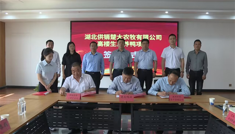 楚大鴨業(yè)公司負(fù)責(zé)人介紹了項(xiàng)目具體情況;襄陽(yáng)市供銷聯(lián)社、宜城供銷聯(lián)社、楚大鴨業(yè)公司進(jìn)行了簽約。