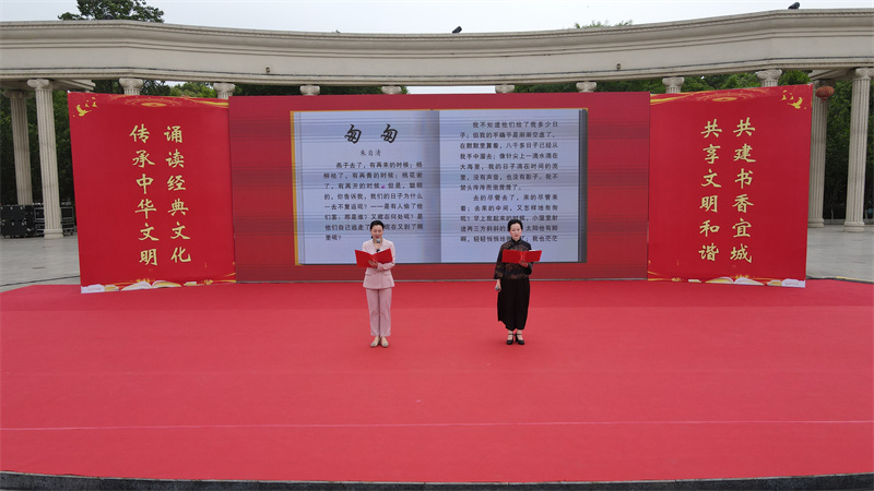 “野水繞空城,行塵起孤驛......”活動(dòng)現(xiàn)場播放了千人齊誦《宜城歌》和漢水系列詩詞視頻,整齊劃一的誦讀聲響徹了整個(gè)燕京花苑,讓人沉浸在美好的閱讀聲中久久無法忘懷;兩名閱讀員現(xiàn)場朗誦了朱自清的《匆匆》,經(jīng)典的文字搭配富有感情色彩的朗讀,贏得了在場觀眾的熱烈掌聲。