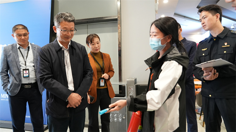 周斌一行通過實地查看、現(xiàn)場操作、詢問情況、查閱臺賬等方式,對消防設施、器材的安全運行,消防通道是否存在安全隱患等問題進行安全排查。