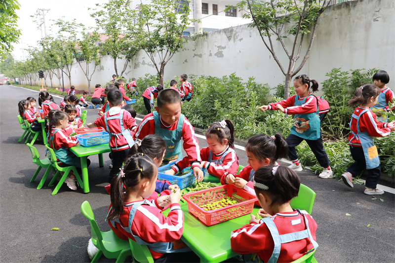 當天,宜城市實驗幼兒園中小班分別開展了穿衣、背書包、疊被子等勞動技能比賽。大班孩子們還到田間地頭參加摘豆、剝豆勞動實踐活動,讓幼兒在感受勞動、體驗勞動、感恩勞動者的過程中獲得了知識,提高了生活技能,激發(fā)了幼兒熱愛勞動、尊重勞動者、珍惜勞動成果的美好情感和良好品質。