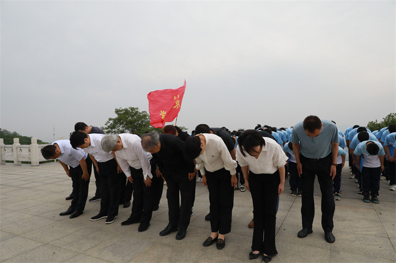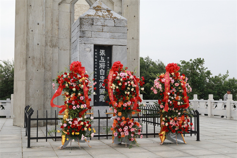 英雄名千古,后人不相忘。上午9時(shí),憑吊儀式正式開(kāi)始,在場(chǎng)全體人員向張將軍紀(jì)念碑敬獻(xiàn)花籃并行三鞠躬禮,深切緬懷張將軍的抗日功績(jī),弘揚(yáng)英烈精神。