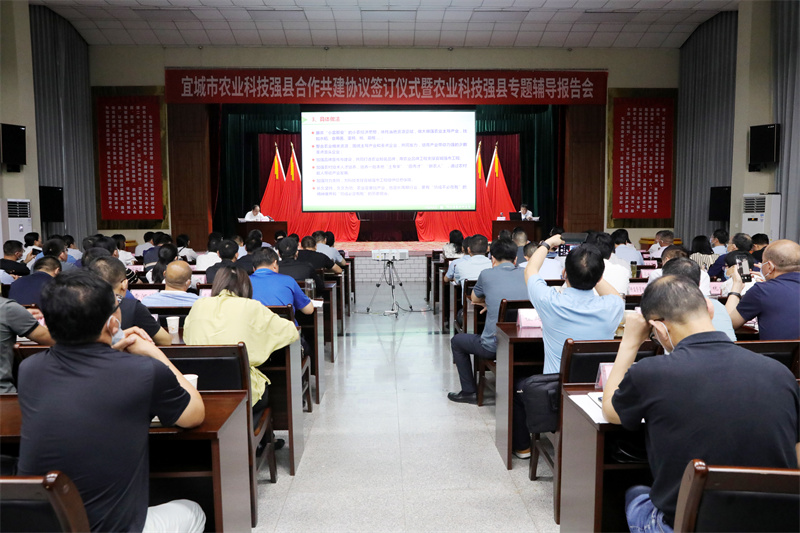 省農(nóng)科院院長(zhǎng)游艾青以《強(qiáng)化科技供給助力強(qiáng)縣工程》為題進(jìn)行專(zhuān)題輔導(dǎo)。他從準(zhǔn)確把握新發(fā)展階段對(duì)“三農(nóng)”工作的新要求、創(chuàng)新科技服務(wù)模式的經(jīng)驗(yàn)與做法、科技支撐農(nóng)業(yè)強(qiáng)縣建設(shè)等方面進(jìn)行了深入淺出地詮釋?zhuān)⑾M饤墶靶「患窗病钡男∞r(nóng)經(jīng)濟(jì)思想,依托當(dāng)?shù)刭Y源稟賦,做大做強(qiáng)農(nóng)業(yè)主導(dǎo)產(chǎn)業(yè);整合農(nóng)業(yè)相關(guān)資源,圍繞主導(dǎo)產(chǎn)業(yè)和重點(diǎn)企業(yè),共同發(fā)力,培育產(chǎn)業(yè)帶動(dòng)力強(qiáng)的重點(diǎn)龍頭企業(yè);加強(qiáng)品牌宣傳與建設(shè),共同打造農(nóng)業(yè)知名品牌,用農(nóng)業(yè)品牌工程支撐宜城強(qiáng)市工程;加強(qiáng)農(nóng)村技術(shù)人才培養(yǎng),培養(yǎng)一批本地“土專(zhuān)家”“田秀才”“新農(nóng)人”,通過(guò)農(nóng)村能人帶動(dòng)產(chǎn)業(yè)發(fā)展。