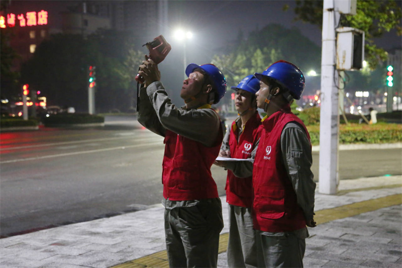當(dāng)晚8點(diǎn),供電公司組織人員來到宜城一中,對(duì)學(xué)校內(nèi)外配電室、變壓器、電力線路及設(shè)備等開展安全排查,密切掌握設(shè)備健康狀況。