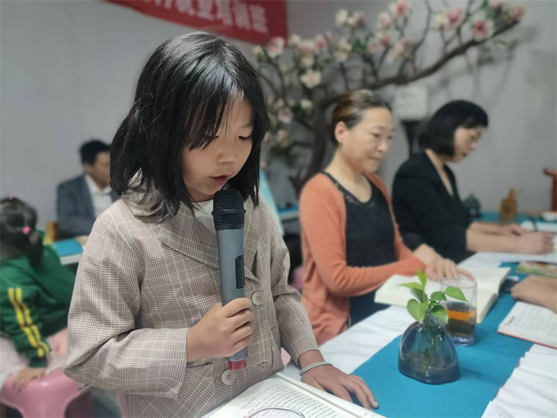“大家好,今天我分享的是精誠所至金石為開的小故事……”活動(dòng)中,孩子們熱情地分享《西游記》《安徒生童話》《成語大全》等一本本自己喜愛的書籍或者小故事,從內(nèi)容簡述、讀書體會(huì)等方面繪聲繪色、落落大方地與在座家長和孩子進(jìn)行分享,讓在座人員在歡聲笑語中體會(huì)到了閱讀的樂趣和分享的快樂。
