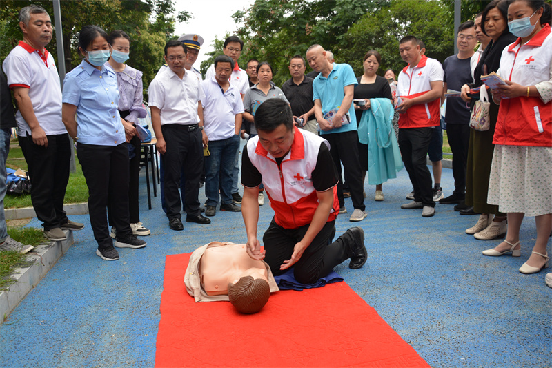 在紫蓋山廣場主會場,市應(yīng)急管理局、消防救援大隊、公安局、交通運輸局等20家單位、26個行業(yè)領(lǐng)域緊緊圍繞"人人講安全、個個會應(yīng)急"活動主題,設(shè)置展板、宣傳咨詢臺開展宣傳,接受市民咨詢;市消防救援大隊消防員展示應(yīng)急救援裝備,視頻宣傳車在活動現(xiàn)場播放警示教育宣傳片;市紅十字會救護師資講解了心肺復(fù)蘇、氣道異物梗阻等常見危險應(yīng)急救護知識,手把手教市民開展互動,進行實際操作。