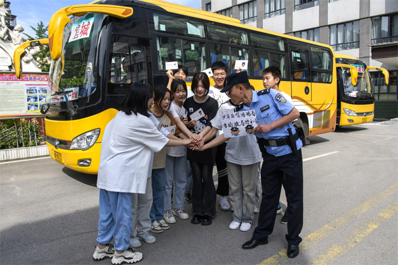 6月19日下午,宜城市漢江中學(xué)邀請鄢城派出所公安民警來到學(xué)校,對學(xué)生進(jìn)行法治宣傳教育,營造風(fēng)清氣正的應(yīng)考氛圍;顒又,民警們對考生進(jìn)行考前溫馨提示,講解預(yù)防電信詐騙知識,同時(shí)對考生發(fā)放應(yīng)考知識卡片,送溫馨祝福。為緩解考生考前壓力,民警們還進(jìn)行了友好鼓勁、游戲互動,營造溫馨和諧的考前氛圍。