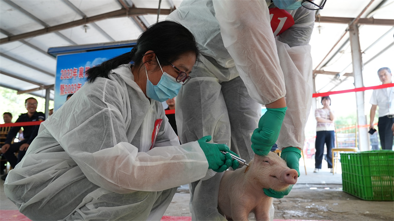 本次競(jìng)賽由襄陽(yáng)市動(dòng)物疫病預(yù)防控制中心主辦,宜城市農(nóng)業(yè)農(nóng)村局承辦,湖北襄大農(nóng)牧集團(tuán)有限公司協(xié)辦,宜城市動(dòng)物疫病預(yù)防控制中心組織實(shí)施。競(jìng)賽采取理論知識(shí)考試和現(xiàn)場(chǎng)操作技能考核相結(jié)合的形式舉行,其中,現(xiàn)場(chǎng)技能操作主要考核豬瘟疫苗免疫注射、豬前腔靜脈采血、雞翅靜脈采血、雞心臟采血、雞體解剖與采樣等5個(gè)項(xiàng)目。本次競(jìng)賽共有8個(gè)代表隊(duì)24名選手參賽。