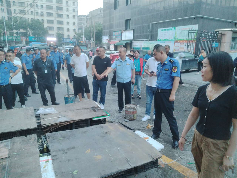在執(zhí)法現(xiàn)場(chǎng),工作專班對(duì)市場(chǎng)內(nèi)商戶證照公示、衛(wèi)生保潔制度落實(shí)、有無(wú)過(guò)期、變質(zhì)、偽劣食品等情況,以及亂搭亂建、亂堆亂擺、亂扔亂倒等“臟亂差”問(wèn)題,馬路市場(chǎng)、占道經(jīng)營(yíng)行為開(kāi)展集中整治,并對(duì)整治行動(dòng)中發(fā)現(xiàn)的問(wèn)題,責(zé)令限期整改。