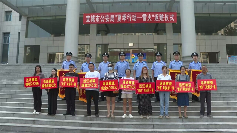 自公安部部署開展“夏季治安打擊整治”行動(dòng)以來,宜城市公安局按照上級(jí)公安機(jī)關(guān)的要求,緊緊圍繞“四個(gè)一批、四個(gè)嚴(yán)防、兩個(gè)確保”工作目標(biāo),扎實(shí)推進(jìn)打、防、管、控、宣、建六條戰(zhàn)線,全警投入、全面深入、全力以赴開展“夏季行動(dòng)”,取得顯著成效。下一步,全體公安民警將以此次返贓大會(huì)為契機(jī),進(jìn)一步振奮精神,乘勢(shì)而上,多破案、快破案,最大限度地減少人民群眾的財(cái)產(chǎn)損失,為平安宜城建設(shè)貢獻(xiàn)公安力量。
