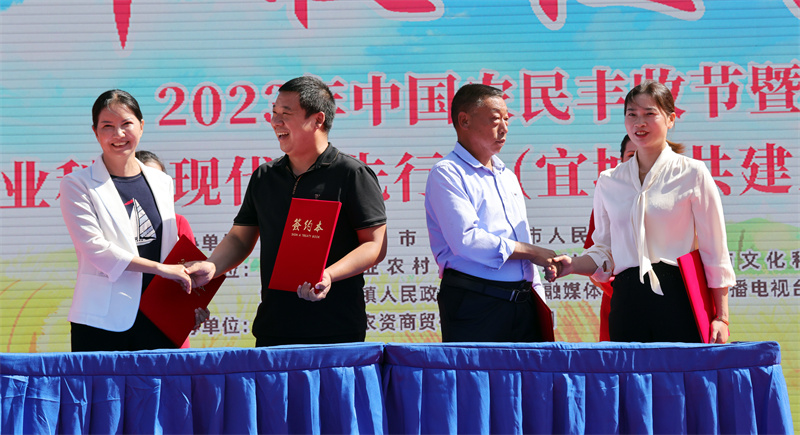 在當(dāng)天的豐收盛會(huì)上,湖北潤(rùn)澤湘楚農(nóng)業(yè)科技發(fā)展有限公司副總經(jīng)理羅翔玲與"十佳糧王"代表唐明濤簽訂優(yōu)質(zhì)稻收購(gòu)協(xié)議;湖北十泉生態(tài)農(nóng)業(yè)有限公司董事長(zhǎng)方雪梅與宜城市流水鎮(zhèn)楊棚村黨支部書(shū)記劉坤簽訂"有機(jī)泉水稻產(chǎn)業(yè)合作共建協(xié)議",標(biāo)志著全省農(nóng)業(yè)科技現(xiàn)代化先行縣(宜城)共建工作正式啟動(dòng),開(kāi)啟宜城市農(nóng)業(yè)科技強(qiáng)縣新篇章。近年來(lái),宜城市錨定農(nóng)業(yè)強(qiáng)市目標(biāo),立足漢江平原的土地資源優(yōu)勢(shì),大力實(shí)施科技創(chuàng)新、業(yè)態(tài)創(chuàng)新、政策創(chuàng)新,通過(guò)新技術(shù)、新產(chǎn)品、新模式的集成推廣應(yīng)用,有力推動(dòng)優(yōu)質(zhì)稻、珍稀菌、葛根、甘薯、鴨產(chǎn)業(yè)等主導(dǎo)產(chǎn)業(yè)和特色產(chǎn)業(yè)提檔升級(jí)。目前,"宜城米"已銷(xiāo)往北上廣深、云貴川陜等17個(gè)省市,深受廣大消費(fèi)者青睞。