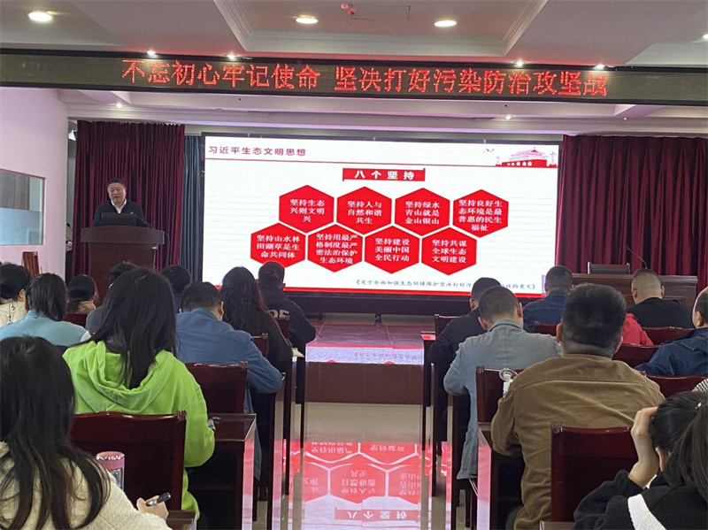 張赟從習(xí)近平生態(tài)文明思想、全國生態(tài)環(huán)境保護(hù)大會精神、我市環(huán)境保護(hù)現(xiàn)狀和問題以及污染防治措施四部分,從學(xué)習(xí)領(lǐng)會宣傳貫徹習(xí)近平生態(tài)文明思想的政治高度,客觀分析了當(dāng)前生態(tài)環(huán)境保護(hù)的嚴(yán)峻形勢,并結(jié)合宜城實(shí)際提出了精準(zhǔn)靶向施策。張赟指出,宜城市委七屆七次全會的勝利召開,凝聚起全市持續(xù)深入打好污染防治攻堅(jiān)戰(zhàn)的強(qiáng)大合力,各項(xiàng)污染防治措施正穩(wěn)步推進(jìn),并產(chǎn)生積極效果。