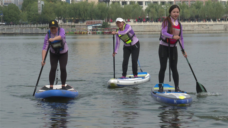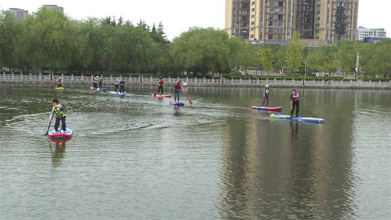 “我很喜歡劃槳板,因?yàn)樗芫毩?xí)我的平衡能力,還能增強(qiáng)體質(zhì),不容易生病!币顺菢暹\(yùn)動(dòng)愛好者郭子瑞開心地說道。