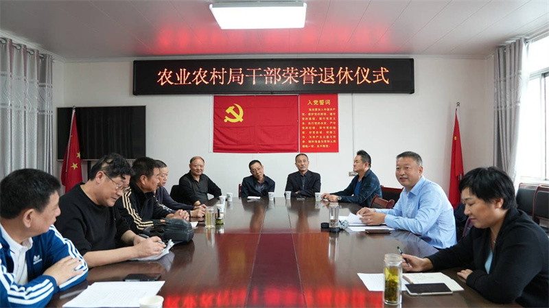 隨后,農(nóng)業(yè)農(nóng)村局黨組成員和老干部們一起合影留念,定格光榮退休時(shí)刻。