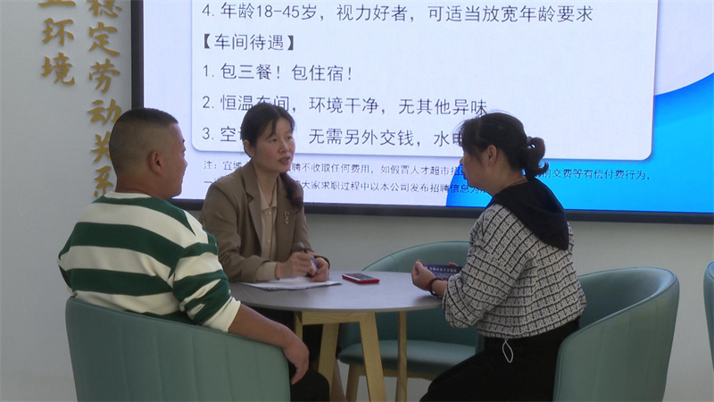在招聘現(xiàn)場,求職者絡繹不絕。宜城市敦和實業(yè)有限公司人事招聘負責人詳細講解了公司生產生活環(huán)境和用工需求及薪資福利待遇,并現(xiàn)場回答求職者的用工方面問題。