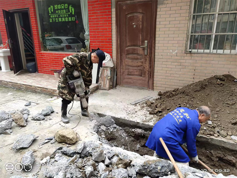 在施工過程中,鄒繼兵和賈德家?guī)ьI(lǐng)黨員自發(fā)組織了一支施工人員,從早到晚都奮戰(zhàn)在工地,每天堅持9個小時以上 ,打電鎬、挖淤泥抽出老細(xì)管換成新粗管,每個人都汗流浹背。大家齊心奮戰(zhàn)7天以后,終于把細(xì)窄的下水道改造成功,讓小區(qū)的排水功能加強。