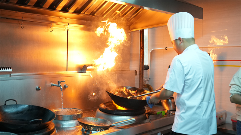 10月19日晚餐時間,在宜城乾溪酒店后廚操作間,爐火熊熊,隨著廚師的翻炒,一鍋鍋“宜城大蝦”飄香出鍋,廚師長曾祥正在指揮20多位廚師烹制“宜城大蝦”。雖然已是中秋,食客們品吃大蝦的熱情仍沒減退,酒店圍繞“宜城蝦王”勞務(wù)品牌全鏈條從業(yè)服務(wù)人員多達100多人。