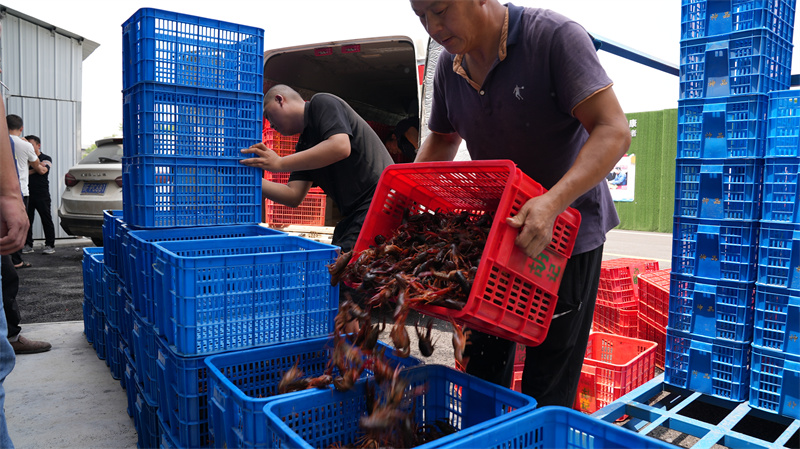 “我們剛捕獲的這批蝦子,每只大約5兩。去年價格是15元一斤,今年能賣到17元。比去年的價格要好!迸藭攒娊榻B說,他養(yǎng)殖的小龍蝦畝產(chǎn)250斤左右,加上水稻,每畝田綜合收入比往年增加了3000多元,比單種水稻高出5倍,還帶動了周圍村民的就業(yè)!懊磕陱3月到6月,我們會請附近的村民來捕蝦,大約7到8個人。平均每個月能掙4000到5000元!