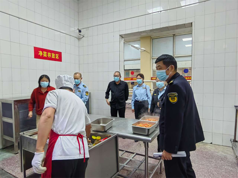 檢查專班詳細查看了考點食堂食品安全相關制度是否健全,冷藏冷凍、食品留樣、餐飲具清洗消毒、“三防”等各類設施設備配備是否充足,從業(yè)人員健康管理是否到位,對用餐配餐記錄、食品留樣、原料采購儲存、臺賬登記、從業(yè)人員健康體檢、操作間及配餐間環(huán)境衛(wèi)生等方面逐一檢查并提出了專業(yè)指導意見。