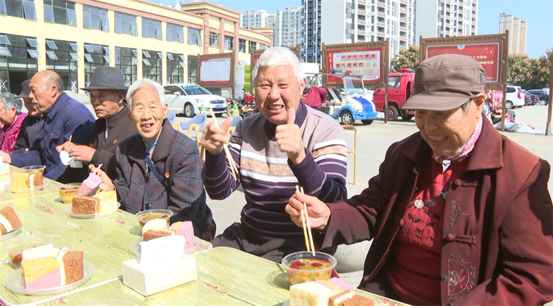 隨后,活動(dòng)舉辦方還為老年人們送去了雨傘、圍巾、紙巾等生活用品和新鮮出爐的雞湯、包子、蛋糕,大家坐在一起品嘗美食,分享革命故事。