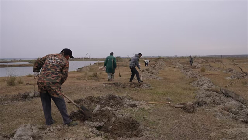 11月25日,在臨近譚垴村的一片公園濕地內(nèi),數(shù)名工人正利用周末時(shí)間加班加點(diǎn)趕進(jìn)度,為濕地岸線種植"食源"性植物。大家分工明確,配合默契,栽種、扶苗、培土......一氣呵成,現(xiàn)場(chǎng)一片繁忙景象。
