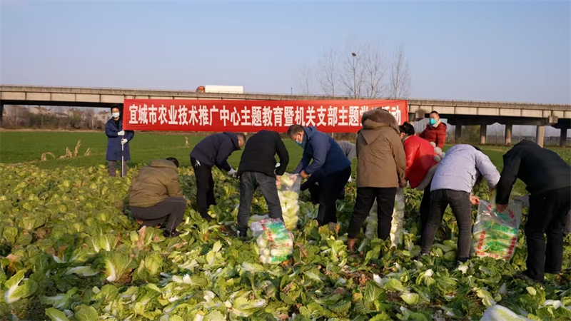 該中心黨員干部還走進(jìn)田間地頭,幫助農(nóng)戶收菜、裝袋、裝車,并幫助卸車、送菜。今天是余士喜銷售的最后一畝白菜,經(jīng)過大家的共同努力,他的蔬菜銷售難問題終于得到了圓滿解決。