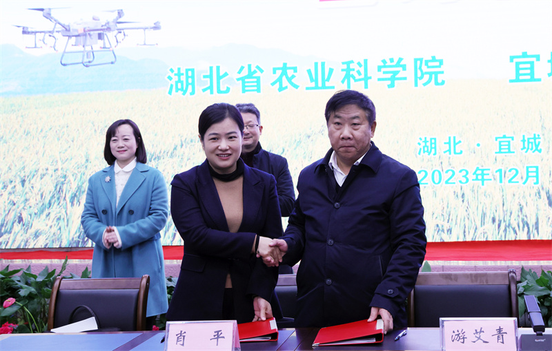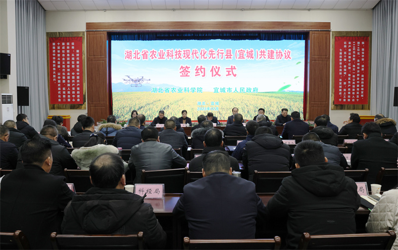 會上,省農(nóng)科院院長游艾青和宜城市委副書記、市長肖平簽訂《湖北省農(nóng)業(yè)科技現(xiàn)代化先行縣共建協(xié)議書》;各研究所與企業(yè)簽訂先行縣“揭榜制”項(xiàng)目協(xié)議。