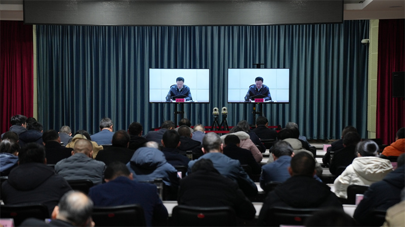 宜城市領導武義泉、李曙東、陳進雷等在宜城分會場參加會議。