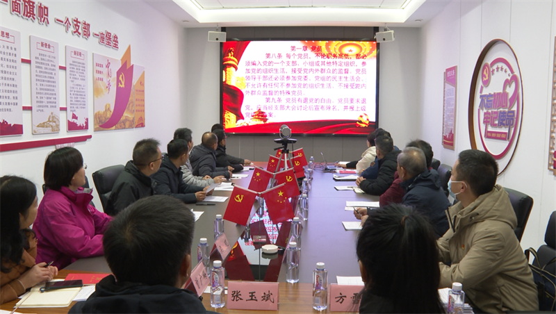 在會(huì)議室里,黨員們齊唱國(guó)歌,集體誦讀《中國(guó)共產(chǎn)黨章程》,集中學(xué)習(xí)全省深化黨員干部下基層察民情解民憂暖民心實(shí)踐活動(dòng)推進(jìn)會(huì)等有關(guān)會(huì)議精神,傳達(dá)襄陽市紀(jì)委監(jiān)委通報(bào)5起不擔(dān)當(dāng)不作為典型案例,學(xué)習(xí)了《關(guān)于新形勢(shì)下黨內(nèi)政治生活的若干準(zhǔn)則》,觀看了《薪火“襄”傳——襄陽黨史故事》系列節(jié)目。