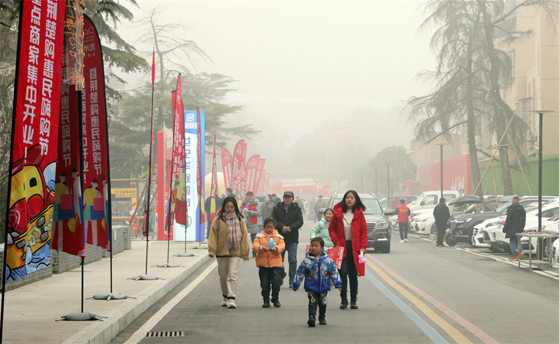 當天,在荊楚購·暖冬跨年迎新季活動現(xiàn)場,板鴨、葛粉、楚貢酒等宜城特色優(yōu)品現(xiàn)場展銷,火爆開賣。五條路創(chuàng)意街區(qū)兒童游樂、酒吧、民宿、超市等開業(yè)促銷。