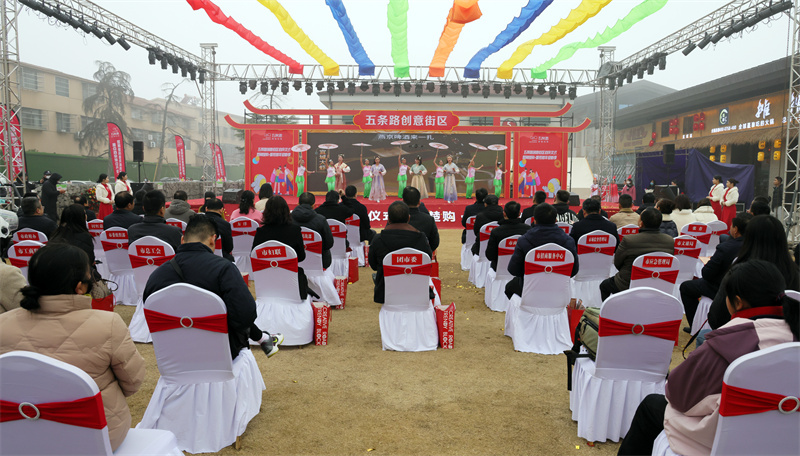 鑼鼓喧天歌盛世,龍騰獅躍譜華章。五條路創(chuàng)意街區(qū)街慶活動在非遺巡演拉開序幕;顒迂S富多彩,舞蹈《楚都鼓韻》、獨唱《紅紅的日子》、花鼓戲表演唱《宜城美食香飄天下》、楚韻游園等等,讓現(xiàn)場市民享受到了一場精彩的文化盛宴。