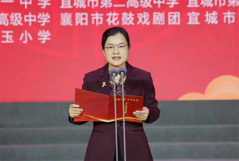 市委副書記、市長肖平致辭。她說,你們從這里啟航追夢,家鄉(xiāng)以你們?yōu)闃s,母校永遠(yuǎn)是你們的情感歸宿,宜城永遠(yuǎn)是你們的避風(fēng)港灣。今日盼君來,再飲漢江水,宜城將創(chuàng)造最好的條件、提供最優(yōu)的服務(wù),讓大家擁有一次難忘的返鄉(xiāng)之旅。借此向大家發(fā)出誠摯邀請,歡迎大家;丶铱纯矗亦l(xiāng)的每一點(diǎn)發(fā)展進(jìn)步都離不開你們的大力支持,每一次燦爛輝煌都離不開你們的熱情幫助!家鄉(xiāng)永遠(yuǎn)牽掛著你們,讓我們攜手并肩、勇毅前行,共建宜城美好的明天!