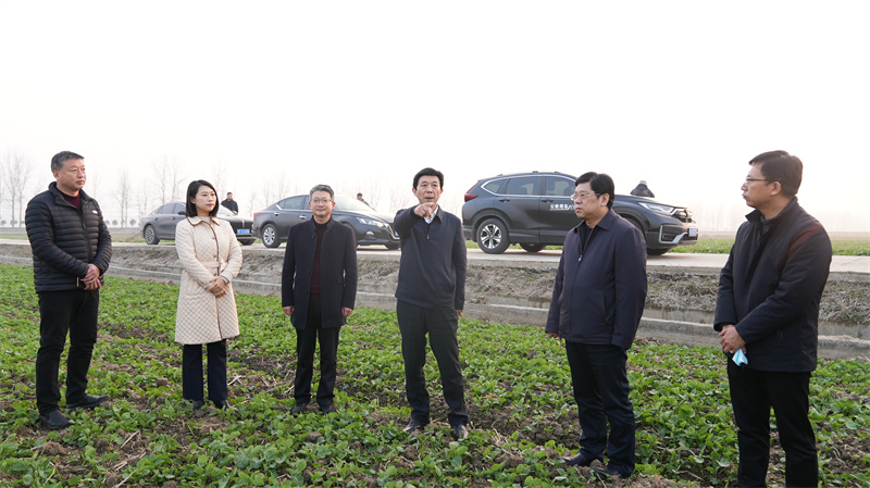 在宜城市鄭集鎮(zhèn)童梅村,李宗友一行深入到高標(biāo)準(zhǔn)小麥、油菜田,認(rèn)真查看實際種植面積及苗情長勢,提供關(guān)鍵技術(shù)指導(dǎo)以確保有效的田間管理。