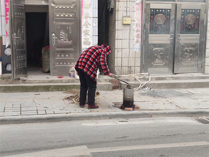 1月15日,在丁家巷內(nèi),記者看到有住戶在戶外燒柴火爐,現(xiàn)場揚(yáng)起濃煙,影響周圍環(huán)境。巷內(nèi)部分位置電線混亂,存在安全隱患。