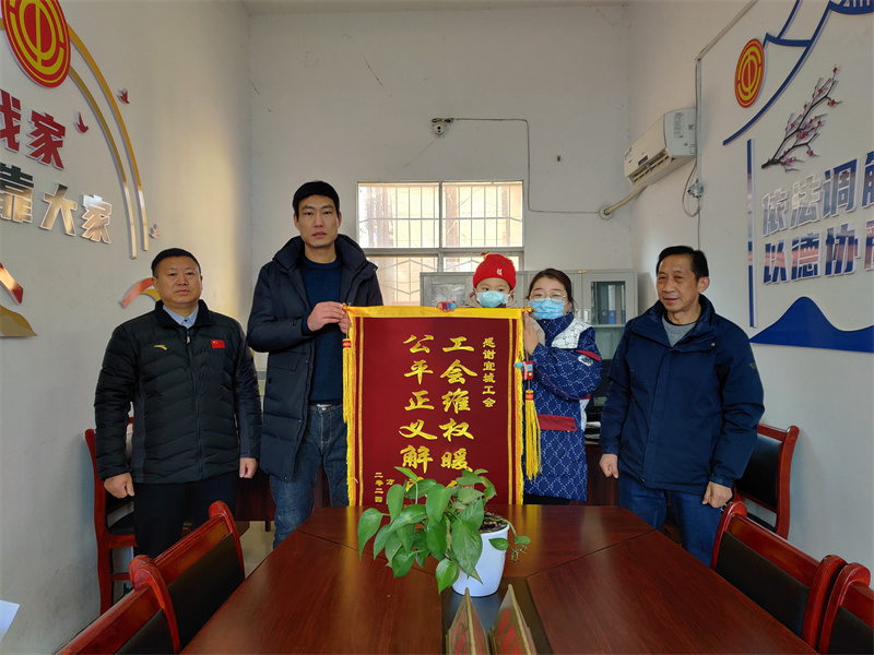 1月23日,農(nóng)民工方某委托妻子張某為宜城市總工會贈送了一面“工會維權(quán)暖人心,公平正義解民憂”的錦旗,表達(dá)感激之情。