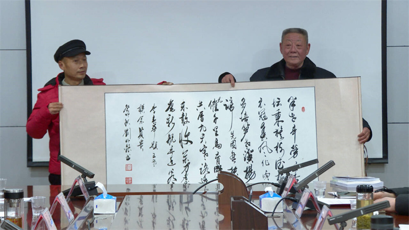 會上進行了贈書儀式,各位作家將《春滿楚都》文集贈送給自己撰寫的先進人物本人,同時還贈送了相關(guān)雜志和書法卷軸。
