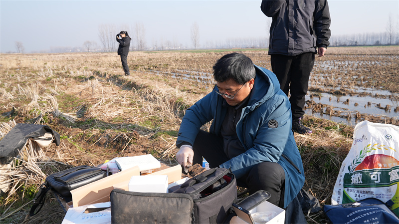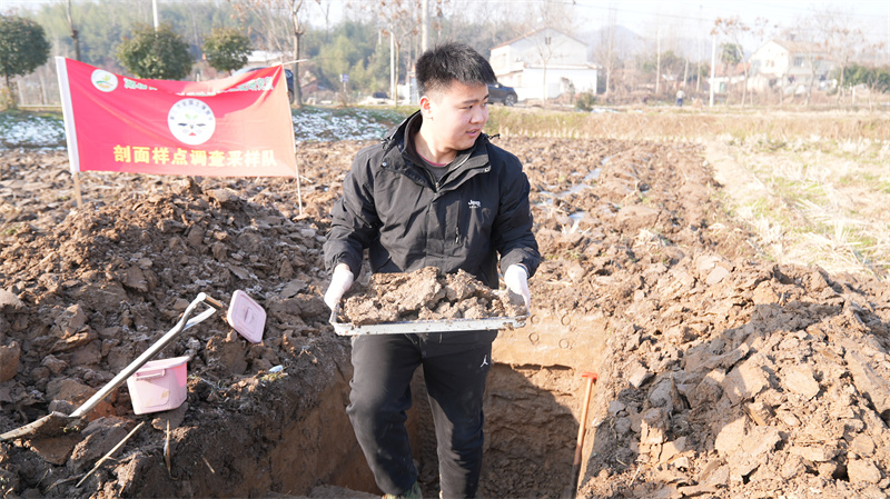 1月25日,記者看到,省農(nóng)科院植保土肥研究所的專家們不畏嚴寒,一絲不茍地在宜城小河鎮(zhèn)大沖村五組的一塊冬閑田中進行土壤采樣。他們通過選擇位置、挖坑剖面、采土裝袋等一系列流程,順利完成了這塊農(nóng)田土壤的采樣“體檢”。