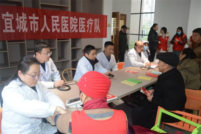 義診現場,宜城市人民醫(yī)院來自心血管內科、內分泌科、普外科等科室的醫(yī)護人員門為居民免費測血壓、血糖,檢查心血管和糖尿病等方面的疾病及健康宣教等。對如何預防、治療常見心血管疾病、糖尿病等進行講解并對居民的疑問進行解答。同時,醫(yī)生們還針對每個居民的身體狀況,從衣、食、住、行多個方面入手叮囑他們日常注意事項,為他們詳細講解防病和養(yǎng)生知識,提出合理的膳食、運動等健康生活指導,做到“未病先防、既病防變、預后防復”。