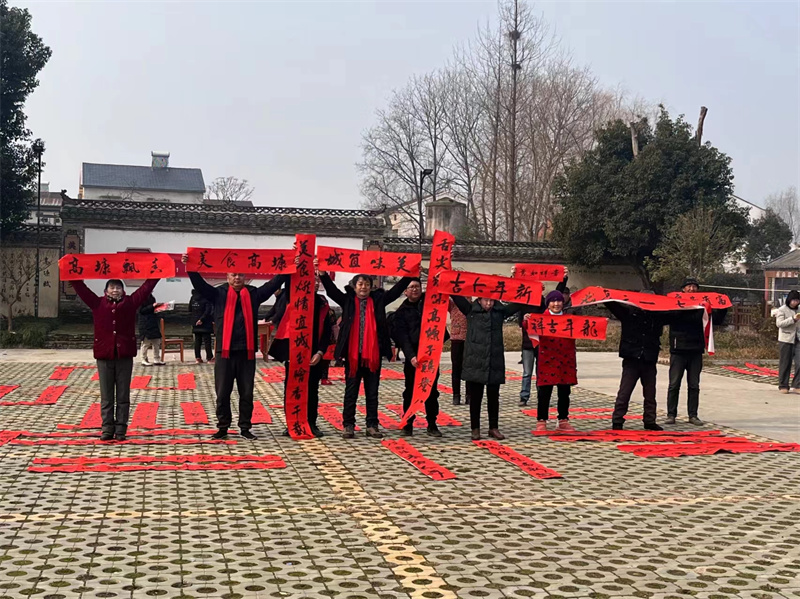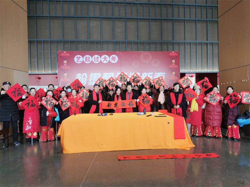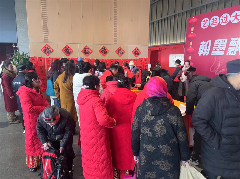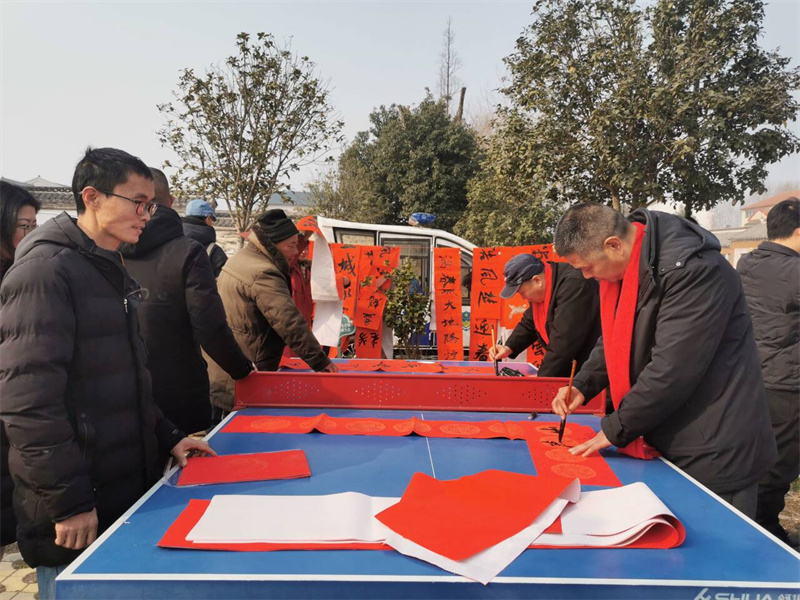在楚都文化中心群藝館新館、小河鎮(zhèn)高康村活動(dòng)現(xiàn)場(chǎng),人頭攢動(dòng),熱鬧非凡。鋪開(kāi)喜慶的大紅紙,書(shū)畫(huà)老師們蘸飽墨汁,凝神聚氣,潑墨揮毫,毛筆落在喜氣洋洋的紅紙上,不一會(huì)兒,一幅幅散發(fā)著墨香的春聯(lián)展現(xiàn)在人們眼前。春聯(lián)內(nèi)容既有辭舊迎新的美好愿景,也有拼搏進(jìn)取、團(tuán)結(jié)奮斗的理想目標(biāo)。前來(lái)領(lǐng)取春聯(lián)的群眾紛紛拍手稱好。