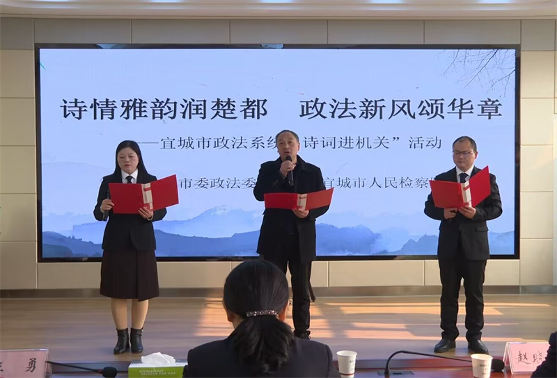 本網(wǎng)訊記者李明磊 通訊員劉生芳報道:1月30日,宜城市委政法委、宜城市人民檢察院聯(lián)合開展“詩詞進機關”朗誦活動,深入挖掘和傳承中華優(yōu)秀詩詞文化,提升政法隊伍的文化素養(yǎng)與人文情懷。