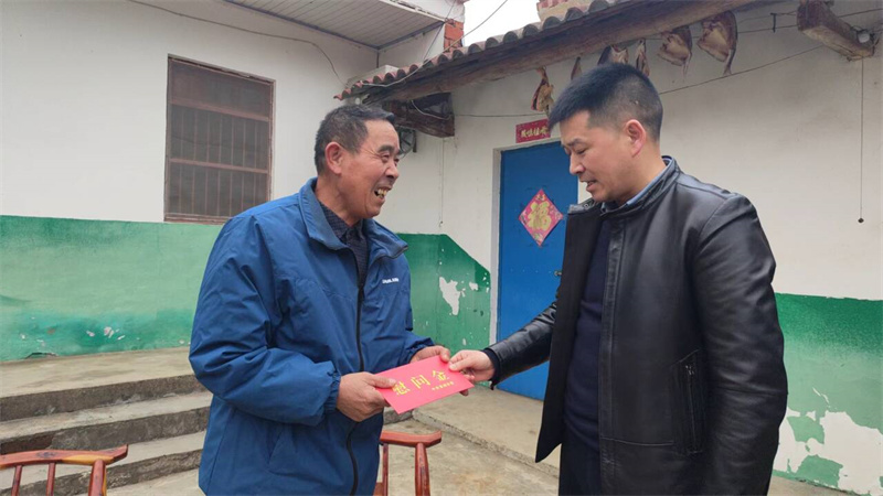 王海、廖華榮一行先后來到郭家榮、梅再旺、付緒友和付雨家中,親切地詢問他們的生活、經(jīng)濟和身體健康狀況,將慰問金和慰問品送到他們手中。