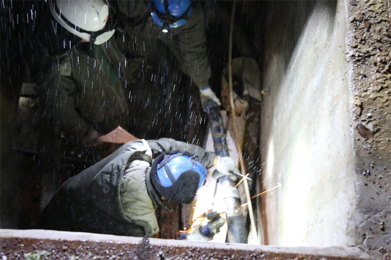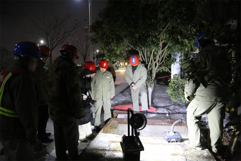 晚上10點,在太平村故障環(huán)網(wǎng)柜搶修現(xiàn)場,搶修人員鉆進(jìn)地下,檢修電纜與環(huán)網(wǎng)柜的連接部分。溫度低至零下,手被凍僵麻木了,便從口中哈口熱氣。