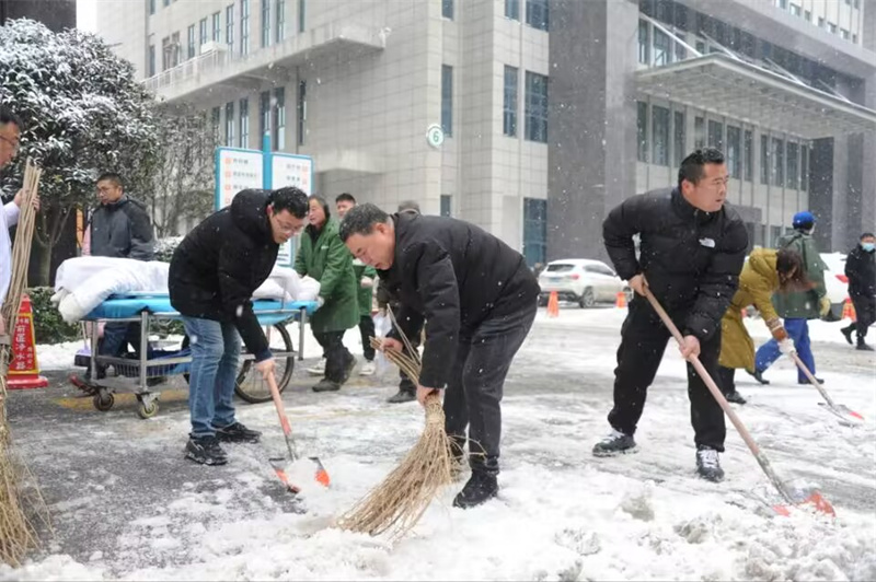 報道:連日來,宜城市普降大雪,給前來醫(yī)院就診的患者及家屬帶來諸多不便和安全隱患。為盡快暢通就診通道,保障就醫(yī)群眾通行安全,宜城市人民醫(yī)院組織干部職工一道清掃道路積雪,保障院內(nèi)行人及車輛的安全出行,為患者提供良好的就醫(yī)環(huán)境。