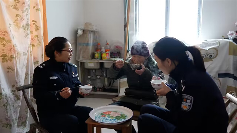 孤寡老人江治英說:“余警官對我很關心,經(jīng)常過來看我,跟我姑娘一樣,來了以后洗衣裳、洗被子,讓我感到很溫暖!