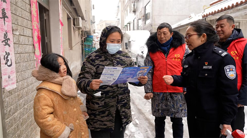 當(dāng)天上午,民警和社區(qū)工作人員冒著風(fēng)雪穿巷入戶,向社區(qū)居民發(fā)放宣傳彩頁(yè),詳細(xì)講解冬季防火、防范電信詐騙、防盜、預(yù)防一氧化碳中毒等知識(shí),以及發(fā)生這些情況后如何進(jìn)行現(xiàn)場(chǎng)自救。