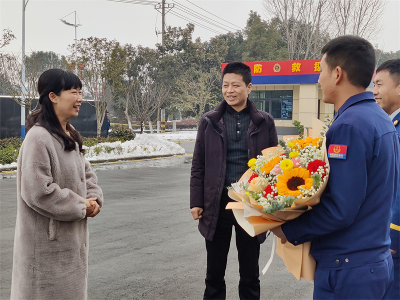 在市楚都大道消防救援站,市總工會相關負責人為宋雨送上鮮花和慰問金,希望他再接再厲,繼續(xù)發(fā)揮模范帶頭作用,在工作崗位創(chuàng)造新業(yè)績。同時,希望全市消防員向先進看齊,大力弘揚勞模精神、勞動精神、工匠精神,增強榮譽感、責任感、使命感,不斷提升防范化解重大安全風險、處置各類災害事故的能力,以實際行動為宜城經濟社會高質量發(fā)展保駕護航。